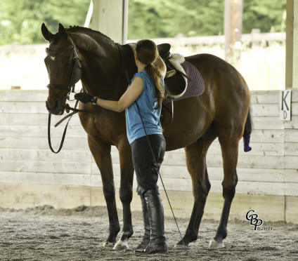 He had two and a half years of dressage training, has a very solid classical foundation, is confirmed in his in-hand work, and was shown through first level very successfully. He was ridden for some months by a local eventer, who states that he is a solid and dependable jumper, with beautiful form and lots of scope. He was ridden by Rick for a year on trails (in western tack!) after we brought him home from his first trainer, and is good in the woods, on trails, and in company. He is a very intelligent and sensitive individual, with strong opinions.