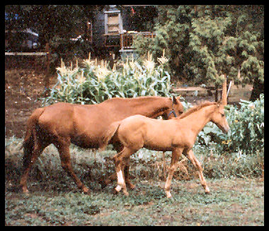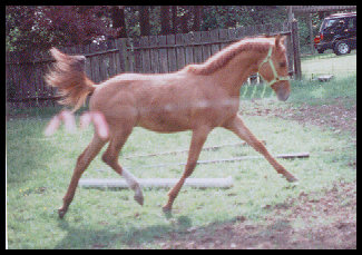 These pictures were taken at four and a half months of age.Sadly, we lost Troops to colic at sixteen months of age. His loss was a crushing blow to both of us, but particularly to Rick, who loves him still. We will always remember this colt, and are fortunate to still own his older full brother, POCO POR MI AMANTE, our senior stallion.