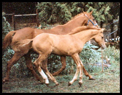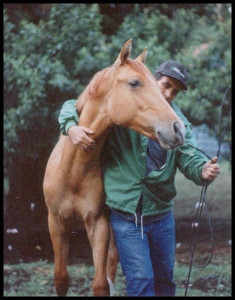 Going in as rank amateurs to the biggest year-end show of this region, we were up against some of the premier sporthorse breeders in the northwest and their best youngsters. We were blessed to show before judge Hilda Gurney, who is one of my heroines. She was kind enough to explain to us just how she would like to see him shown. She placed him as Reserve Champion for Dressage Breeding weanling colts - and the points he earned then gave him the Reserve Champion Horse of the Year in Dressage Suitability for 1994! Needless to say, we were on Cloud Nine for weeks!